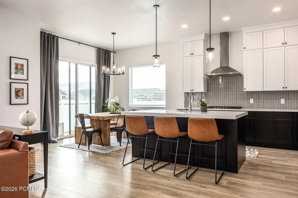 Better than new--this nearly brand-new home delivers modern luxury, open-space privacy, and exceptional flexibility without the wait. Less than 18 months old and completely turn-key, this thoughtfully designed residence offers primary-floor living, soaring vaulted ceilings, and a bright, open layout that lives beautifully for both full-time owners and investors--all just 15 minutes from both Deer Valley Resort and Sundance Resort. With 5 bedrooms, 3 bathrooms, and a spacious 3-car garage, the home provides ample space for family, guests, or rental income potential. Positioned to capture the benefits of open space and lower-density surroundings, the setting offers a rare sense of privacy and breathing room while maintaining easy access to world-class recreation, dining, and year-round amenities. Designed for today's lifestyle, this property is nightly-rental approved with a minimum one-night stay, making it an exceptional opportunity for short-term rental income, second-home ownership, or a flexible primary residence. Every detail is complete and move-in ready--no construction delays, no upgrades needed, just immediate enjoyment or income. Whether you're seeking single-level convenience, a lock-and-leave investment, or a like-new home in a low-density open-space setting near Utah's premier mountain resorts, this property stands out as a rare opportunity to own new construction quality without the wait. Photographs included in the listing contain virtually staging of furniture and other decor and are intended for illustrative purposes only.